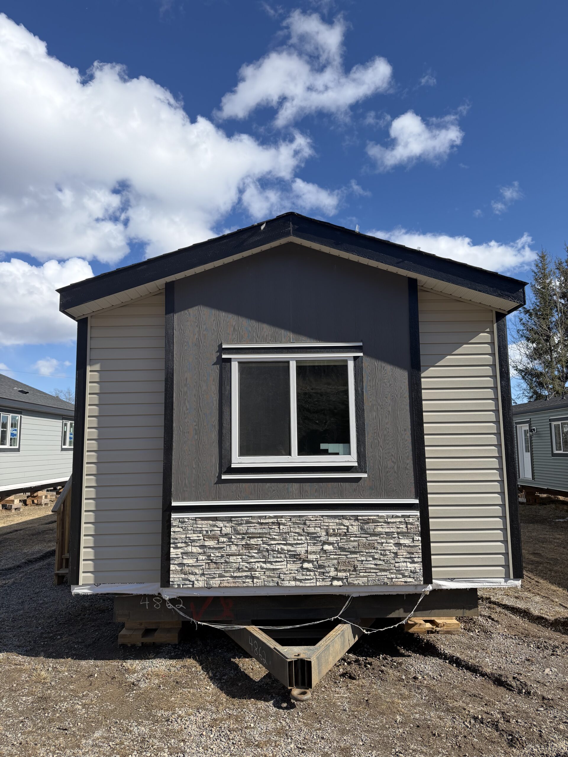 - Rock & vertical siding accent on built out window